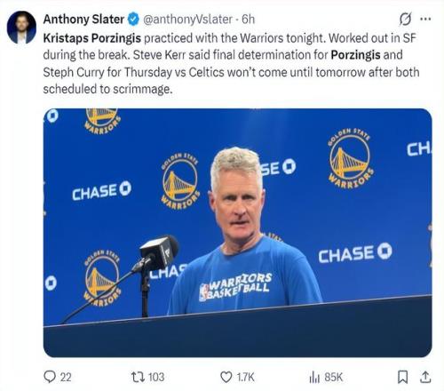 北京時間2月18日,科爾在采訪中透露波爾津吉斯的近況,他說道:在整個全明星周末期間,珀金都在舊金山訓練,他是否出戰對陣凱爾特人的比賽還要看明日的情況,波爾津吉斯已經完成過3V3、5V5的對抗訓練。庫里也將歸隊,屆時這兩人都會參與球隊的對抗賽。
