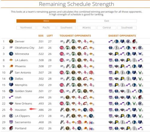 有7場比賽是面對附加賽 、季后賽圈內的球隊,其中還有兩場比賽是背靠背,火箭隊的魔鬼賽程即將到來。