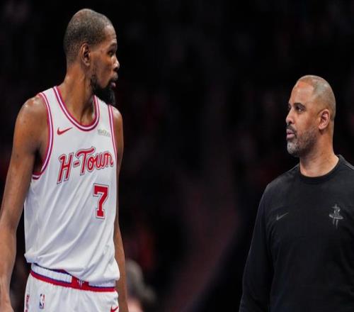 只見杜蘭特穿上了“死神罩袍”,揮舞著鐮刀,開啟了他的個人表演秀。最后5分鐘的時間里,火箭一共得到10分,全部出自杜蘭特之手,無論是行進中Crossover擺脫后的后仰跳投,還是背轉(zhuǎn)身的立棍單打,他都穩(wěn)穩(wěn)命中。到了這樣的節(jié)骨眼上,烏度卡也沒有再耍小聰明,老老實實畫戰(zhàn)術(shù)安排KD接球,申京拿到球后也不敢造次,選擇撅腚單打,老老實實把球給到阿杜。
