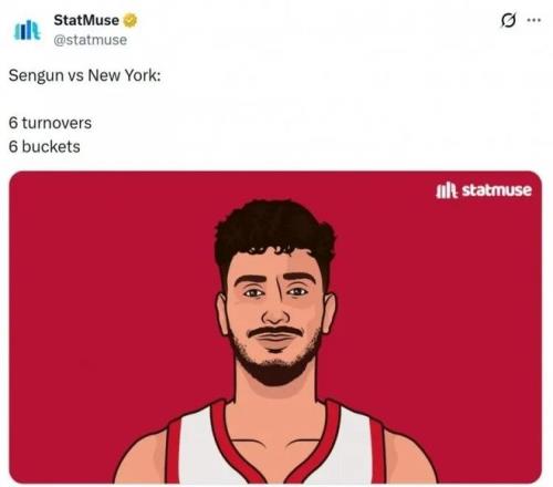 內線核心申京的表現則喜憂參半,全場 12 投 6 中,得到 16 分 6 籃板 6 助攻 3 蓋帽,可失誤數高達 6 次,美媒 StatMuse 更是直接發文調侃:“申京在紐約的表現:6 個進球、6 次失誤。”