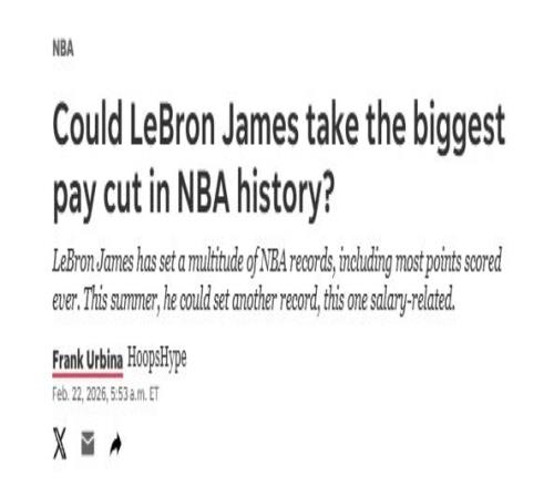 北京時間2月23日,知名美媒HoopsHype表示,詹姆斯下賽季可能會大幅降薪,甚至創下NBA歷史降薪紀錄。以下是該媒體...