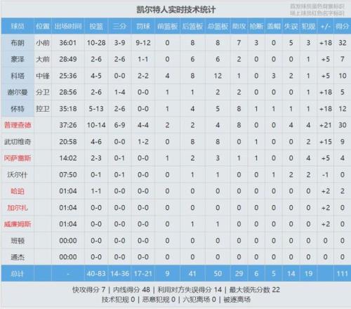 凱爾特人替補(bǔ)合砍45分,普理查德獨(dú)得30分4籃板8助攻,湖人替補(bǔ)加起來25分!杰倫-布朗28投10中,砍下32分8板7助3斷,他跟普理查德合砍62分。湖人東契奇25分5板3助、詹姆斯20分4板5助2斷、里夫斯15分7板2助2斷。