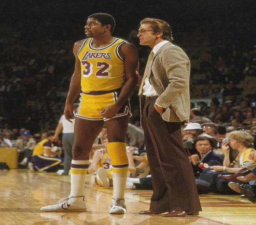 帕特-萊利為湖人拿了6個(gè)總冠軍(球員時(shí)代1個(gè),助教1個(gè),主教練4個(gè)),80年代湖人“Showtime”時(shí)期的華麗進(jìn)攻正是由萊利打造。那時(shí)候NBA聯(lián)盟主旋律就是黃綠大戰(zhàn),80年代這兩支球隊(duì)三次在總決賽相遇,湖人贏了其中的兩次。