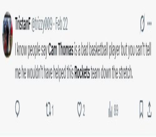 一天之前,火箭領先尼克斯18分被逆轉,尤其是末節15-33進攻端崩盤。休媒就炮轟過斯通的運作,對卡姆-托馬斯沒有興趣是敗筆。