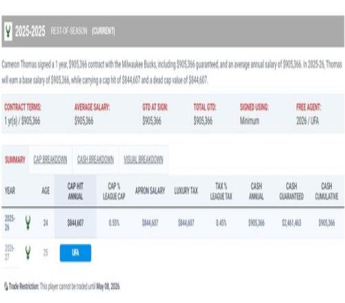 托馬斯在被籃網裁掉后,他與雄鹿簽下的是一份84萬的底薪合同,火箭距離第二奢侈稅征點還剩125萬,按理說火箭也給得起,而且火箭隊正好是14+3名單,火箭隊沒有追逐他肯定是因為烏度卡覺得他防守不行,可是火箭隊本賽季最差的方面是進攻,關鍵時刻只能看杜蘭特、申京兩個點。