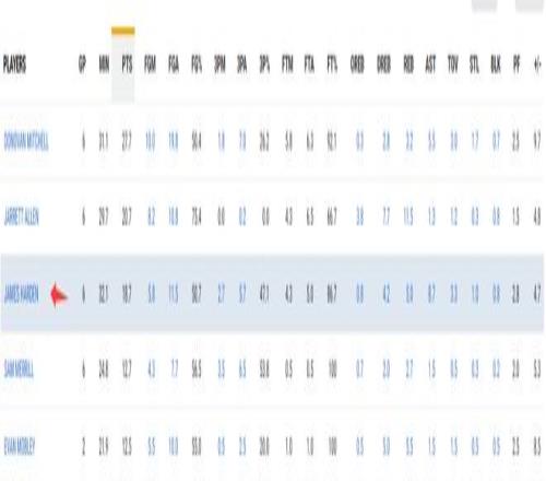哈登加盟騎士隊(duì)的6場(chǎng)比賽,場(chǎng)均32.1分鐘,拿到18.7分8.7助攻5籃板1搶斷0.8蓋帽,命中率50.7%,三分命中率47.1%,罰球命中率86.7%,正負(fù)值+4.7。