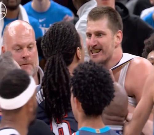 穆雷三分止血后,約基奇打板拋投,霍姆格倫連續(xù)吃餅暴扣,約基奇今天可沒罰球,還是亞歷山大“強(qiáng)”。兩隊(duì)維持8分左右陷入拉鋸戰(zhàn),中段約基奇和亞歷山大對飆,約基奇帶隊(duì)拉開10分分差。后半段穆雷再中三分,亞歷山大連續(xù)單打,三節(jié)打完時(shí),雷霆追到77-83。決戰(zhàn)第四節(jié),雷霆這邊下三分雨,多特和杰林多點(diǎn)開花,一波11-2反超掘金。此時(shí)發(fā)生意外:多特發(fā)力直接撞翻約基奇,約基奇在第四翻滾幾圈后,起身暴怒,準(zhǔn)備和多特打架。杰林沖上來撕扯約基奇球衣,約基奇又和雷霆球員扭打到一起,場面陷入混亂!