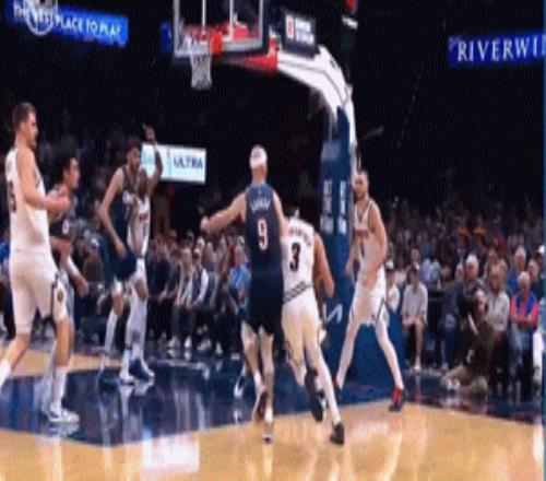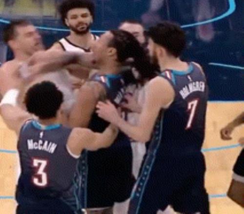 從第一節(jié)開始,約基奇和杰林威廉姆斯就斗個不停