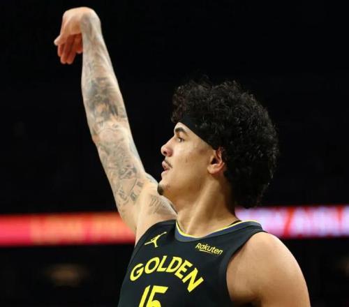 桑托斯身高2米01,臂展2米13,擁有標準的NBA鋒線身材,是2022屆的55號秀,目前23歲,生涯前兩個賽季,他都是勇士的邊緣輪換: