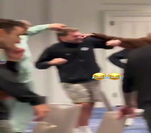 海斯和范德比爾特站在東契奇一旁,像兩大護法一般,拉拉東契奇的帽子,拍拍他的肩膀,欺負人!