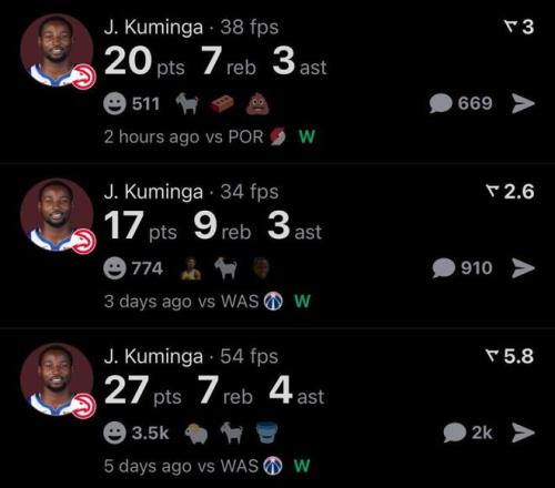 而這也是庫明加交易截止日離開勇士加盟老鷹隊傲人表現(xiàn)的縮影,加盟老鷹至今3場比賽,庫明加合砍64+23+10全能數(shù)據(jù)。