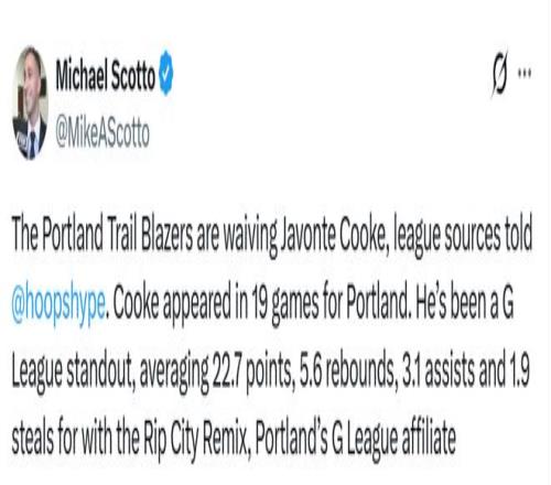 簽下?lián)P布拉德后,開拓者決定裁掉庫(kù)克。庫(kù)克為開拓者出戰(zhàn)了19場(chǎng)比賽,他在G聯(lián)賽表現(xiàn)十分出色,代表開拓者下屬球隊(duì)混音隊(duì)場(chǎng)均得到22.7分、5.6籃板、3.1助攻、1.9搶斷。目前,開拓者擁有2名雙向合同球員(揚(yáng)布拉德和樂福)與15名標(biāo)準(zhǔn)合同球員,球隊(duì)18人大名單還未滿員。