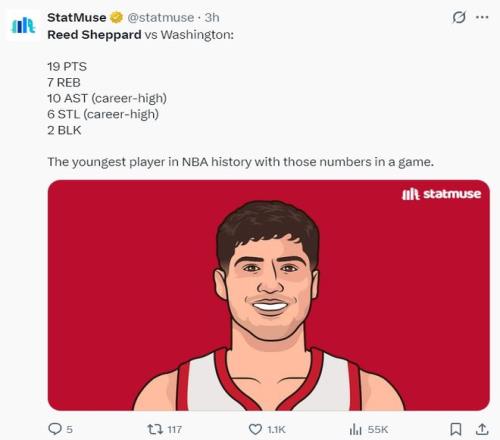 4.謝潑德成為最年輕拿到19+10+7+6+2數(shù)據(jù)的球員;