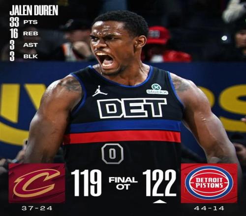 這場雖然米切爾+哈登缺席,但是活塞贏得并不容易,杜倫第四節(jié)單節(jié)11分5板+加時賽4分3板,幫助活塞3分險勝對手,個人正負(fù)值則高達(dá)+14。