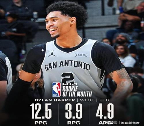 至于最佳新秀,哈珀單月場均貢獻12.5分、3.9個籃板以及4.9次助攻。乍一看,這數據似乎平平無奇,與東部同獲此殊榮的克努佩爾相比,更是略顯遜色??藞鼍苻Z下21.5命中4.5記三分,三分命中率高達48.5%。然而,無奈西部新秀中表現突出者寥寥,且馬刺隊的戰績太過耀眼,這才讓哈珀脫穎而出。