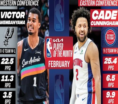 活塞隊在二月份取得了9勝2負的戰(zhàn)績,穩(wěn)居東部第1位。在這個過程中,CC身先士卒,大包大攬。CC出戰(zhàn)11場,場均砍下25.4分+6.5籃板+9.9助攻+1.6搶斷+1.5蓋帽的全面數(shù)據(jù),命中率為47.2%,三分球命中率為37.3%。據(jù)NBA官網(wǎng)數(shù)據(jù)統(tǒng)計,這是CC本賽季第二次拿到月最佳球員獎(上一次是2025年10-11月東部最佳球員),他是本賽季聯(lián)盟唯一一位多次拿到月最佳的球員。考慮到出勤、戰(zhàn)績和全面性,CC同樣也會是MVP之爭中的大黑馬。