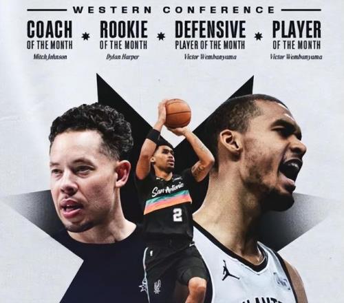 在這個過程中,文班亞馬攻防一體,場均僅出戰(zhàn)29分鐘,豪取22.5分+11.3籃板+3.5助攻+1.4搶斷+3.5蓋帽。這么打下去,文班亞馬會將DPOY收入囊中,也會是MVP之爭中的大黑馬。哈珀場均出戰(zhàn)25分鐘,場均貢獻12.5分+3.9籃板+4.9助攻,他有著遠超同齡人的沉穩(wěn)與大局觀,低調卻實用。與此同時,馬刺隊將帥聯(lián)手創(chuàng)造一項神級紀錄。據(jù)NBA官網(wǎng)數(shù)據(jù)統(tǒng)計,馬刺隊是NBA歷史上首支在同一個月包攬這四項大獎的球隊,前無古人!