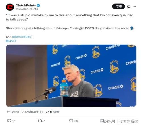 實際上,庫里的傷病尚屬可預見范疇,勇士隊更為擔憂的是新援波爾津吉斯的情況。在昨日勇士與快船的比賽中,波爾津吉斯再度缺席。主帥科爾解釋道:“波爾津吉斯的病情頗為復雜,隊醫正努力查明其具體病情。”此前有傳聞稱,波爾津吉斯所患的“疑難雜癥”可能與體位性心動過速綜合征(POTS)有關,該病癥在他效力于凱爾特人隊時已被查出,屬于自主神經功能障礙性疾病。