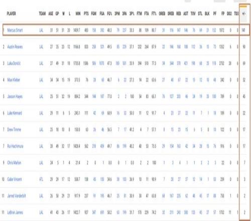 這一戰(zhàn)過后,斯馬特的賽季總正負(fù)值達(dá)到了+141,繼續(xù)在湖人隊(duì)內(nèi)斷層排名第一。里夫斯+90排名全隊(duì)第二,東契奇+69排名全隊(duì)第三,克勒貝爾+52第四,海斯+45第五。詹姆斯本賽季的正負(fù)值+2排名第11。湖人隊(duì)內(nèi)正負(fù)值最低的球員是拉拉維亞,數(shù)值為-93,其次是艾頓的-65。