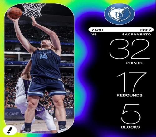 其中對陣國王的比賽,伊迪還打出了生涯之夜,全場只出戰了不到30分鐘,投籃20中16,0三分0罰球,得到32分17籃板5蓋帽,這也是他生涯第一次得分30+。