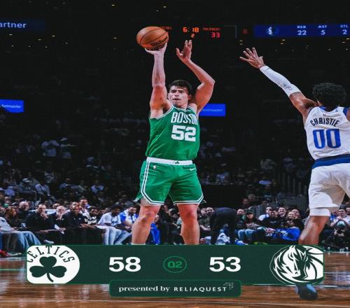 第二節(jié)開始后兩隊(duì)拉鋸幾個(gè)回合,馬丁和馬紹爾輪流得分,獨(dú)行俠隊(duì)以29-26領(lǐng)先。懷特連拿5分幫助球隊(duì)再次反超,獨(dú)行俠隊(duì)不甘示弱,華盛頓三分命中結(jié)束9-2的小高潮,半場(chǎng)前5分40秒時(shí)他們以38-34領(lǐng)先。普理查德三分追近,弗拉格、馬紹爾先后取分,獨(dú)行俠隊(duì)繼續(xù)保持領(lǐng)先。布朗連拿3分把差距縮小到1分,華盛頓失誤,普理查德三分不中,守在籃下的塔圖姆直接把球補(bǔ)扣,他拿到復(fù)出后的前2分。弗拉格單打回應(yīng),塔圖姆找回手感底角三分命中,懷特隨后突破扣籃打3分,凱爾特人隊(duì)以58-53反超5分進(jìn)入半場(chǎng)休息。