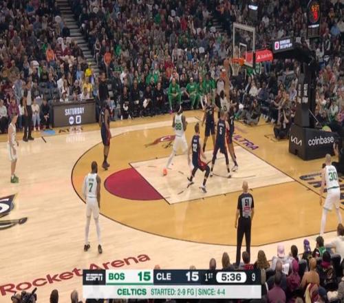 第一節結束時,凱爾特人已經以35-26領先,第二節單節,凱爾特人又打了騎士一波21-10,將分差擴大到了20分。