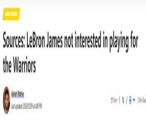 北京時(shí)間3月10日,據(jù)Lakers Daily消息源透露:如果勒布朗-詹姆斯今年休賽期不退役,他下賽季無(wú)意為金州勇士效力。...