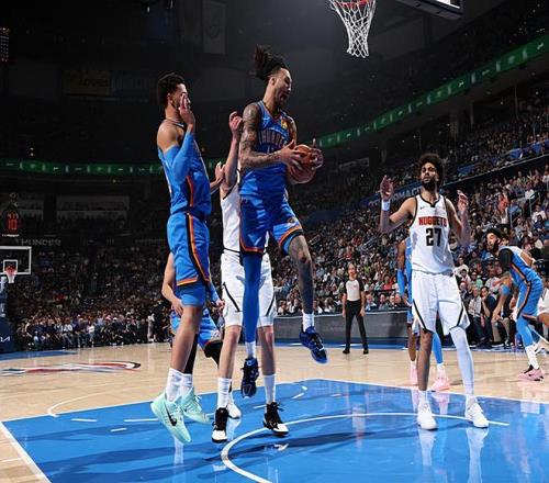 本場比賽中,雷霆的先發中鋒杰林-威廉姆斯(Jaylin Williams)的表現算得上是令人刮目相看。威廉姆斯全場出場39分37秒,投籃17中10,三分線外11中7,罰球4中2,得到了29分12籃板3助攻2蓋帽的兩雙數據,還有1次失誤和4次犯規,正負值為+4。值得一提的是,29分是威廉姆斯職業生涯的第二高得分,本場比賽也是他職業生涯表現最好的比賽之一了。威廉姆斯在進攻端不斷通過外線投籃完成得分,他的投射能力有了充分地體現,他還具備一定的傳球能力和策應能力。到了防守端,威廉姆斯也具備一定的內線防守能力和籃板保護能力。總體來看,面對著尼科拉-約基奇(Nikola Jokic),威廉姆斯能夠打出這樣的表現,能夠在進攻端完爆對手,也是一件很不容易的事情,也能夠說明他的能力和狀態有多出色。