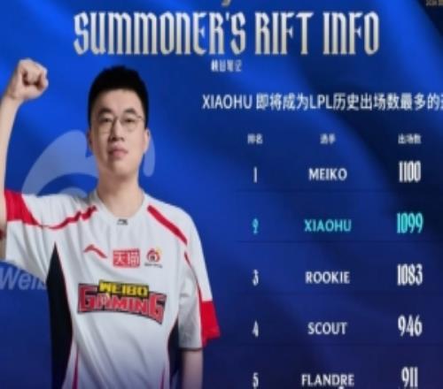 電競體育2月2報道 僅差一場!xiaohu即將超越Meiko成為LPL出場數最多的選手!