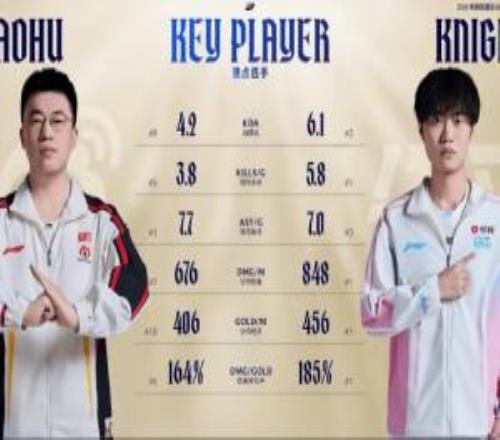 電競(jìng)體育2月27報(bào)道?在今天的BLG對(duì)陣WBG的BO5比賽中,賽前官方給出了雙方中單選手?jǐn)?shù)據(jù)對(duì)比,其中Xiaohu僅助攻高于Knight。