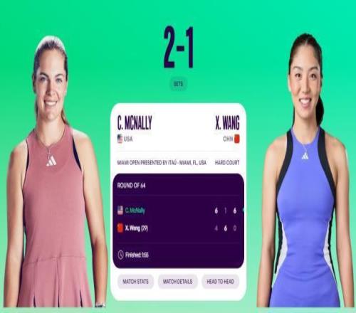 03月21報道 WTA1000邁阿密站第二輪,29號種子王欣瑜4-6、6-1、0-6不敵麥克納莉,無緣32強,陽光雙賽遭遇背靠背首戰出局。