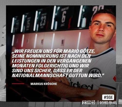 從來之即戰的核心到任勞任怨的替補,本賽季在德甲只是亮相了786分鐘,交出了0進球0助攻的成績單,在感官上這是明顯的退步的軌跡,然而誰用誰知道,法蘭克福官網將格策拔高到精神領袖的高度:“板凳席上就能提供底氣”