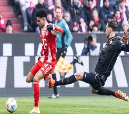 比賽第23分鐘,拜仁取得進球!奧利塞開出角球,伊藤洋輝頭球攻門,球進了!2分鐘后,迪亞斯在禁區(qū)左側(cè)起球傳中,卡爾后點包抄凌空射門,踢飛了。隨后,迪亞斯在禁區(qū)左側(cè)小角度射門被封堵出去。