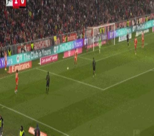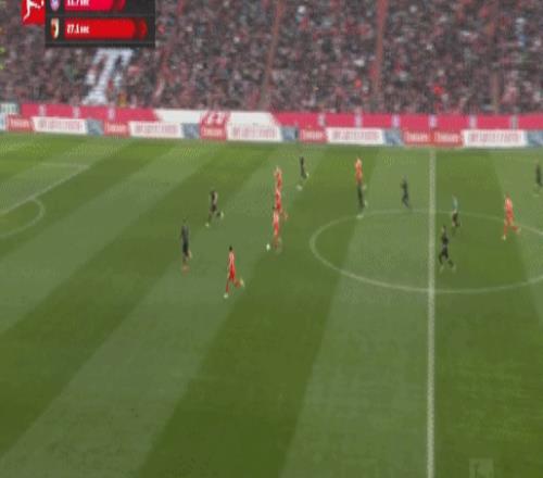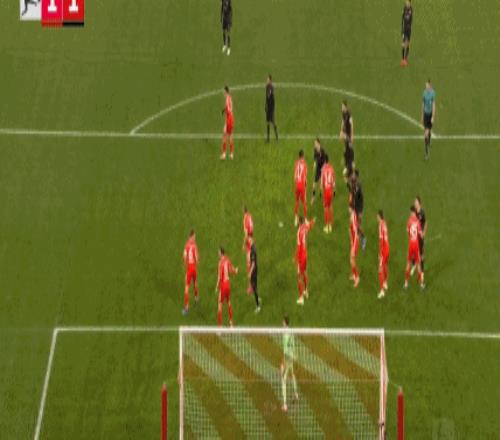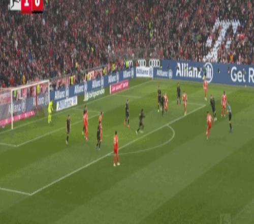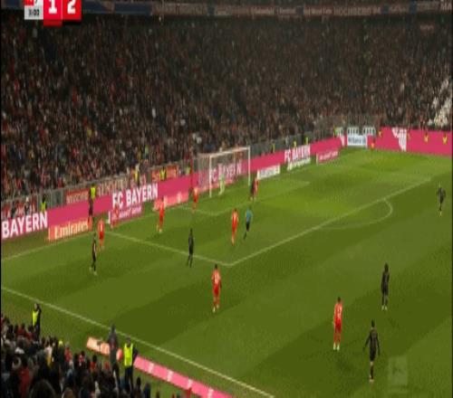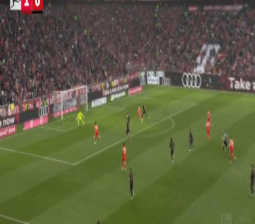第81分鐘,流暢配合,吉安努利斯倒三角,馬森戈破門,奧格斯堡2-1拜仁