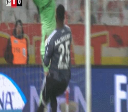 第25分鐘,哨響后卡利穆恩多仍做出射門動作,裁判對其出示黃牌警告