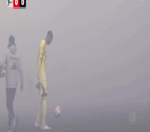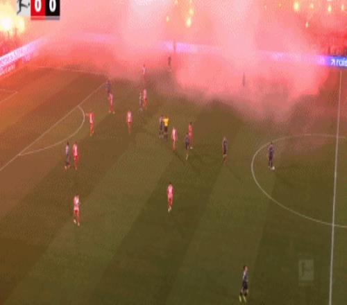 第10分鐘,球迷燃放煙花造成場上煙霧過大,裁判暫時吹停比賽