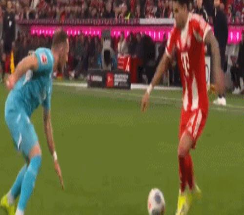 傷停補時階段,凱恩帶球推進策動反擊,禁區前沿順勢分球,路易斯-迪亞斯晃開角度,寫意推射遠角得手,拜仁短時間連下兩城,3-1!