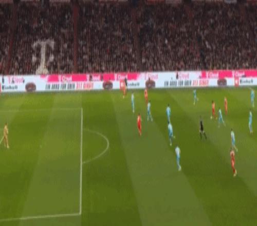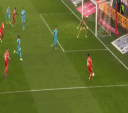 第67分鐘,替補登場的倫納特-卡爾前場攔截,路易斯-迪亞斯右路傳中,凱恩跟上勁射,鮑曼奮力一撲,皮球擊中立柱彈出。