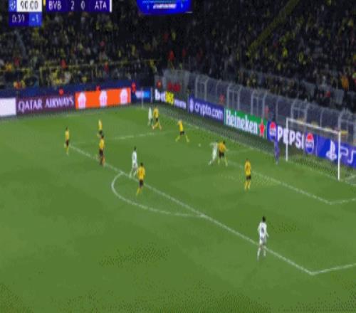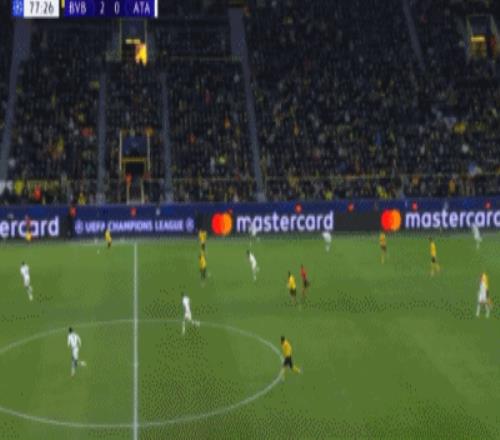 第42分鐘,吉拉西左路傳中,拜爾后點推射空門破門,多特2-0亞特蘭大
