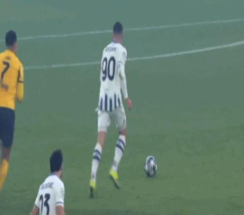 第12分鐘,故意撞人,斯卡馬卡被吹罰犯規