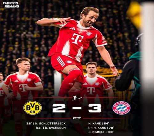 全場比賽結(jié)束,比分定格在2-3,拜仁客場逆轉(zhuǎn)雙殺多特,豪取各項賽事5連勝!