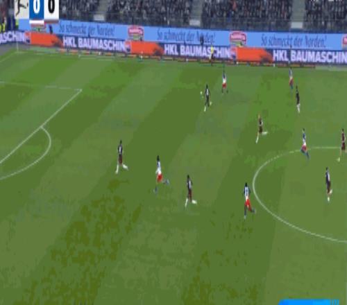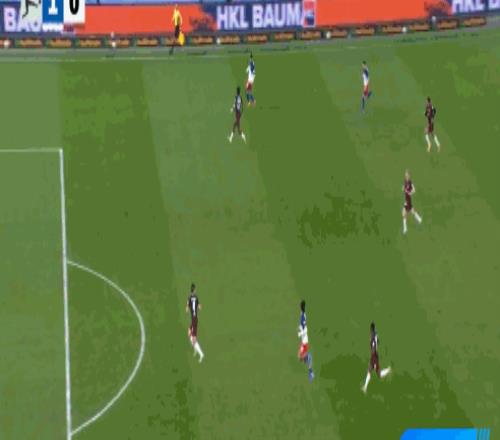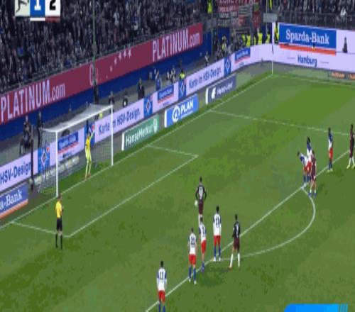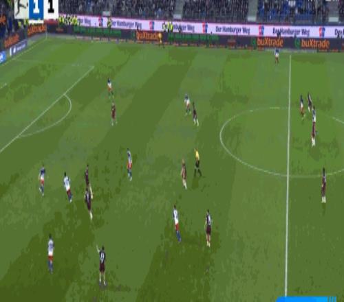 第23分鐘,邁克爾布倫西斯倒三角傳球,法比奧-維埃拉破門,漢堡1-0