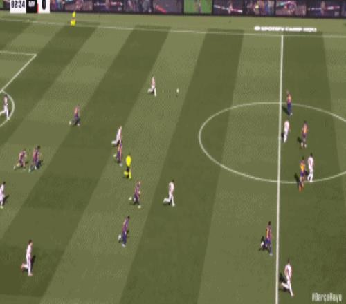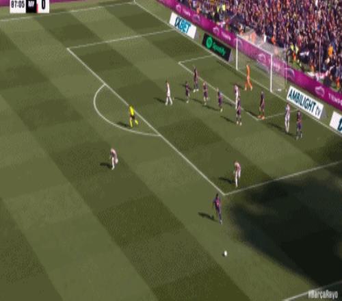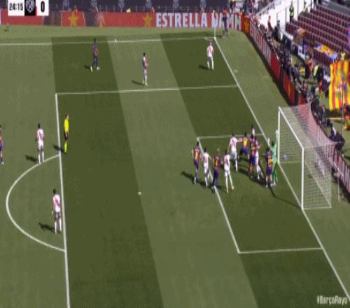 第24分鐘,坎塞洛角球助攻,阿勞霍頭球彈立柱入網(wǎng),巴薩1-0領(lǐng)先!