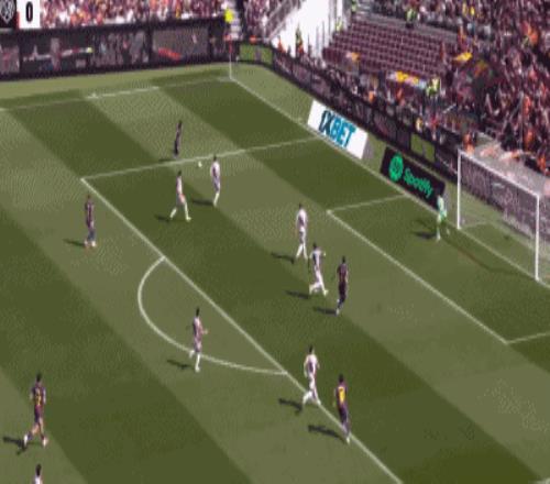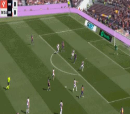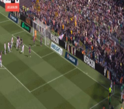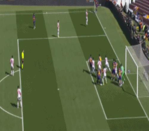 第24分鐘,坎塞洛角球傳中,落點恰到好處,阿勞霍后點頭球攻門,擊中立柱入網,巴薩打破僵局,1-0!