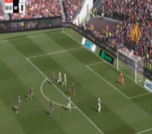 第58分鐘,亞馬爾右路直傳,費蘭-托雷斯跟上傳中,拉菲尼亞后點接應飛身鏟射踢空,皮球滑門而過。第61分鐘,弗里克一口氣連換2人,卡薩多和奧爾莫登場,貝爾納爾和費爾明被換下。
