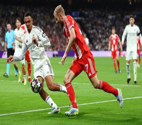 第25分鐘,阿諾德在禁區(qū)右側(cè)的勁射被擋出。3分鐘后,姆巴佩突入禁區(qū)右側(cè),接到直塞球,小角度射門,但再次被諾伊爾化解。第34分鐘,維尼修斯的低射被門將撲住。第41分鐘,拜仁進(jìn)球了!格納布里送出手術(shù)刀直塞球,迪亞斯前插,單刀推射破門!半場結(jié)束,皇馬0-1拜仁。