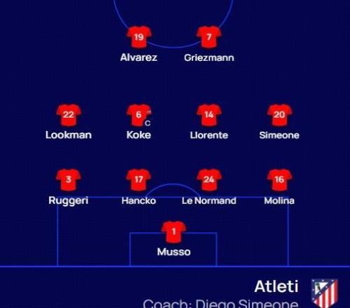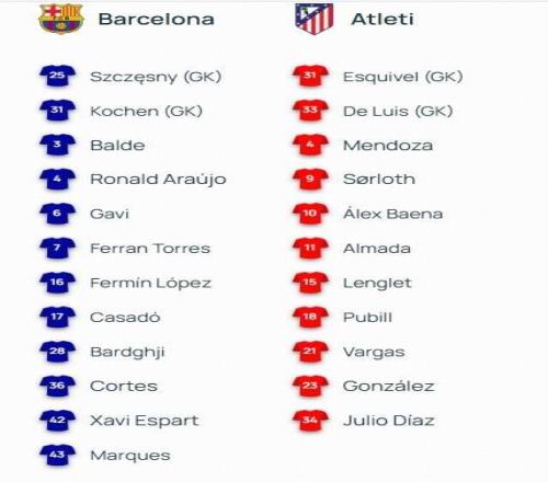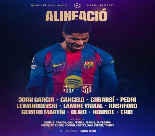 巴薩vs馬競:亞馬爾PK格列茲曼,拉什福德、阿爾瓦雷斯出戰