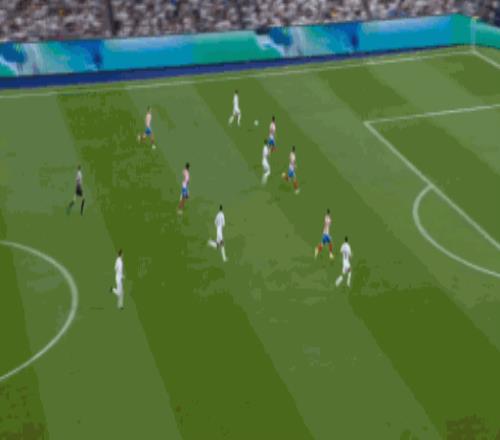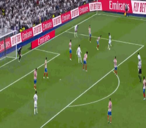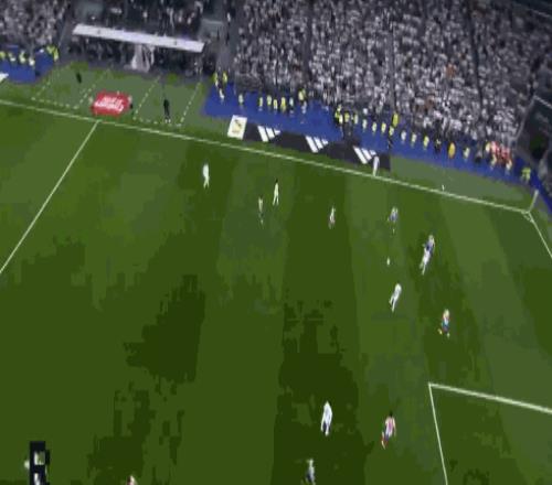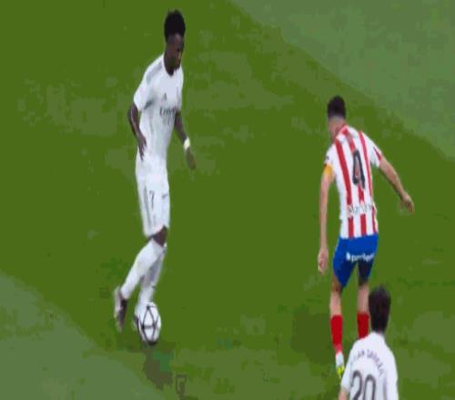 第19分鐘,卡馬文加做球,維尼修斯射門被撲住
