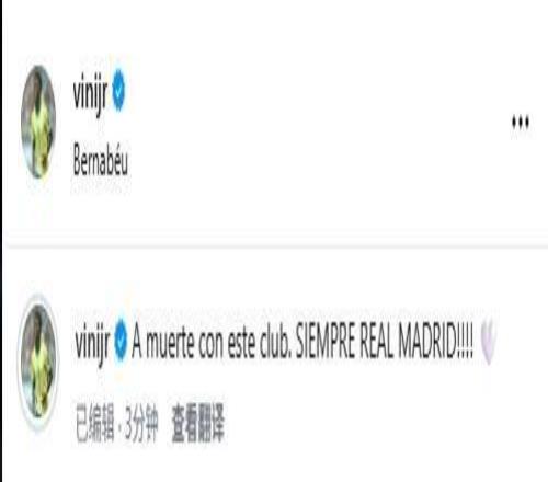 賽后,維尼修斯在社交媒體上發(fā)文表示:“至死忠于這家俱樂部,永遠(yuǎn)都是皇家馬德里!!!”