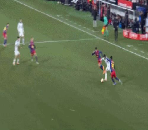 第30分鐘,內瓦被亞馬爾壓到后傷退,巴列霍替補登場